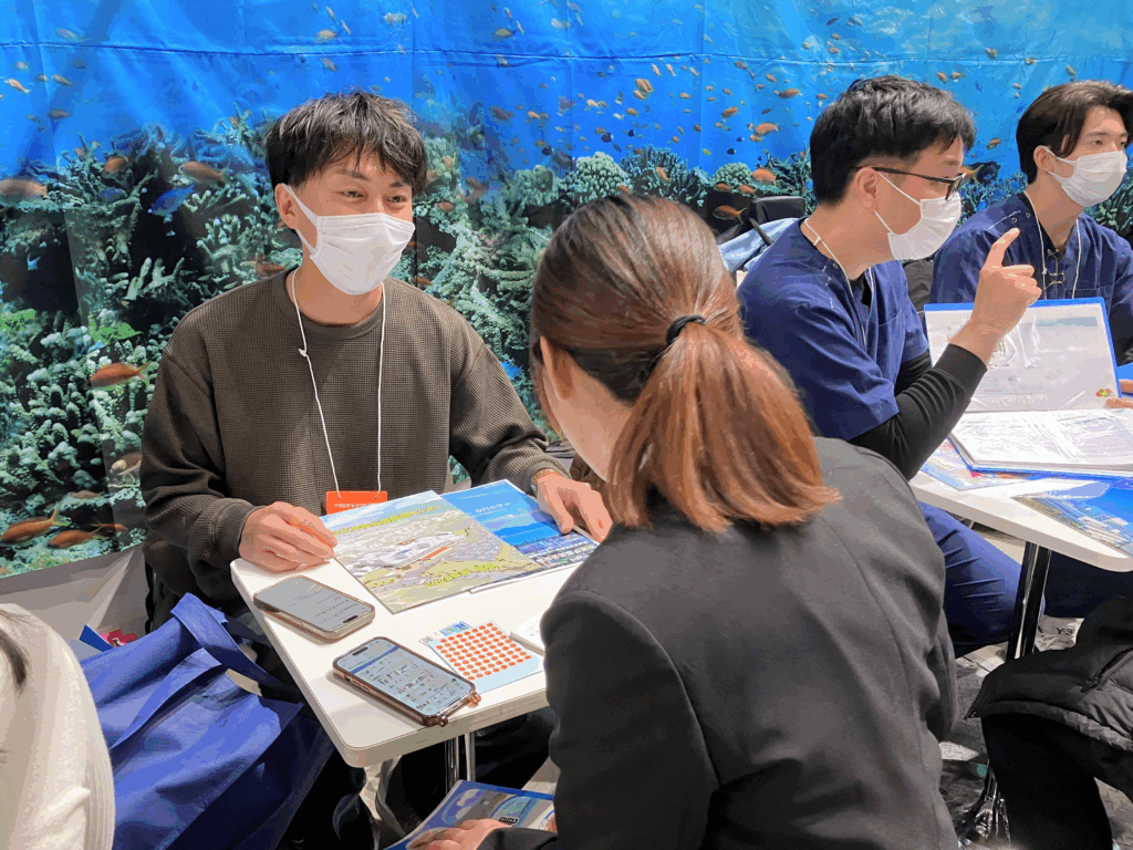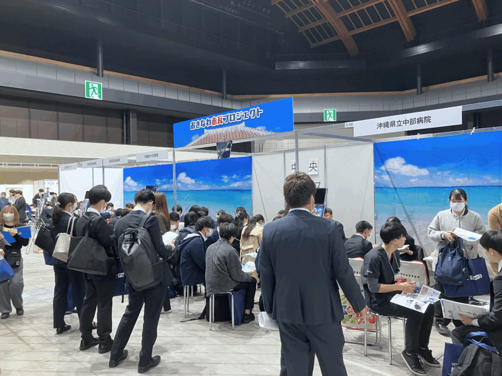 沖縄全体ブースの来場者は294名(昨年:323名)で、沖縄ブースの来場者割合は23.7%と過去最高を記録しました。当院ブースにも12名の医学生にお立ち寄りいただきました。ありがとうございました。