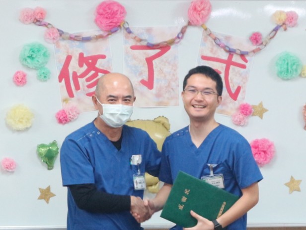 和7年3月19日(水)当院2階会議室において、「臨床初期研修 修了式」が行われ、諸喜田院長より修了証が手渡されました。