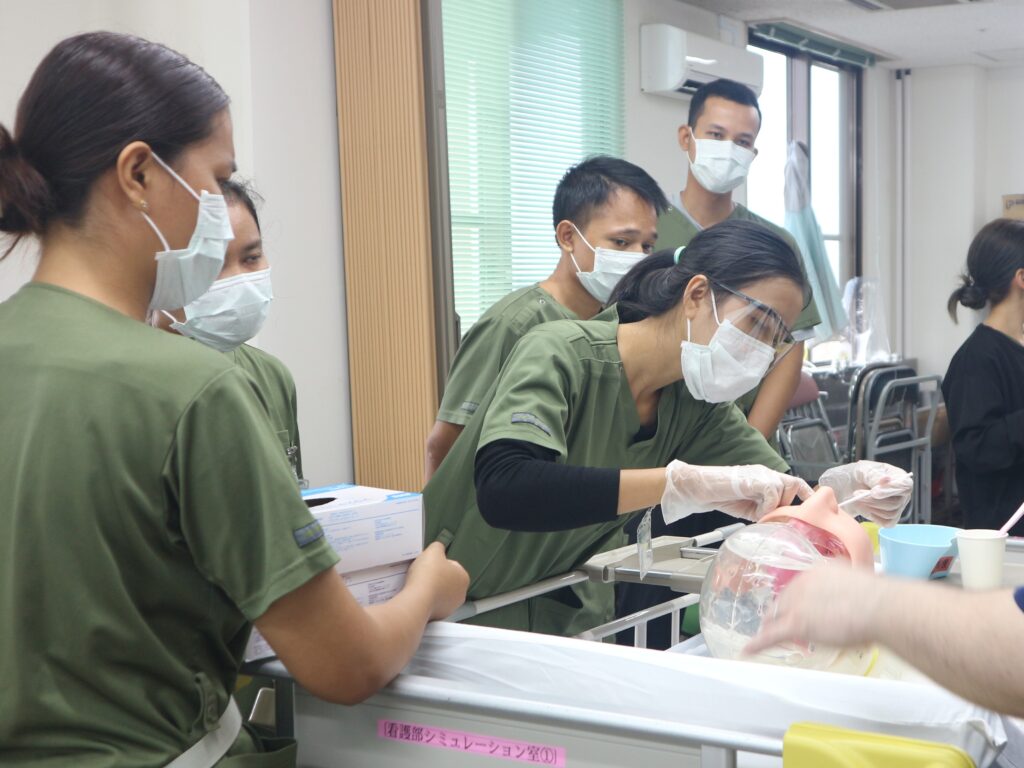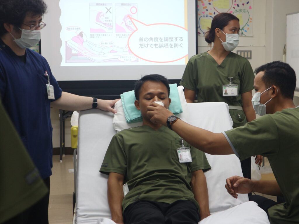 その後は、人事課と看護部によるオリエンテーション、ベッドメイキングや車椅子移動、体位変換、排泄・食事介助の実技演習のほか、病棟での研修を経て12月中旬に各病棟への配属が予定されています。