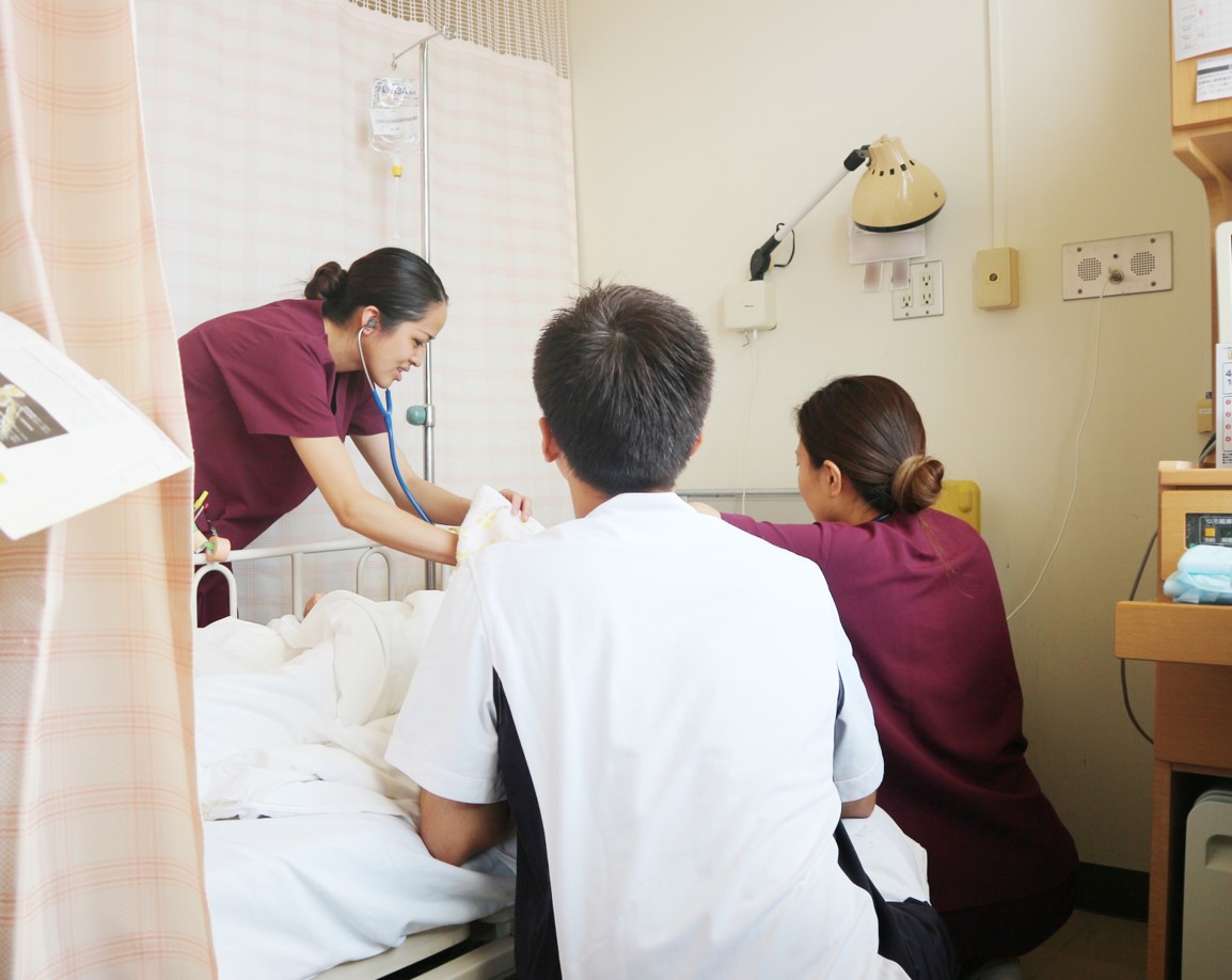 講義では、問診から始まり、頭頸部・胸部・胃部・腹部・外皮系・神経系・電解質のアセスメントに関する基礎的な知識について学び、臨床実習では、実際に入院患者さんと対面しフィジカルアセスメントを行い、意見を出し合い看護問題を抽出しました。