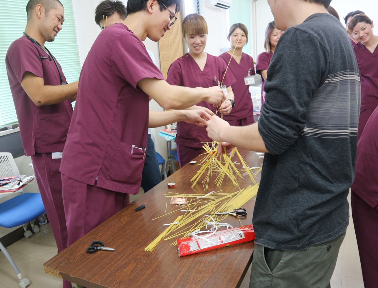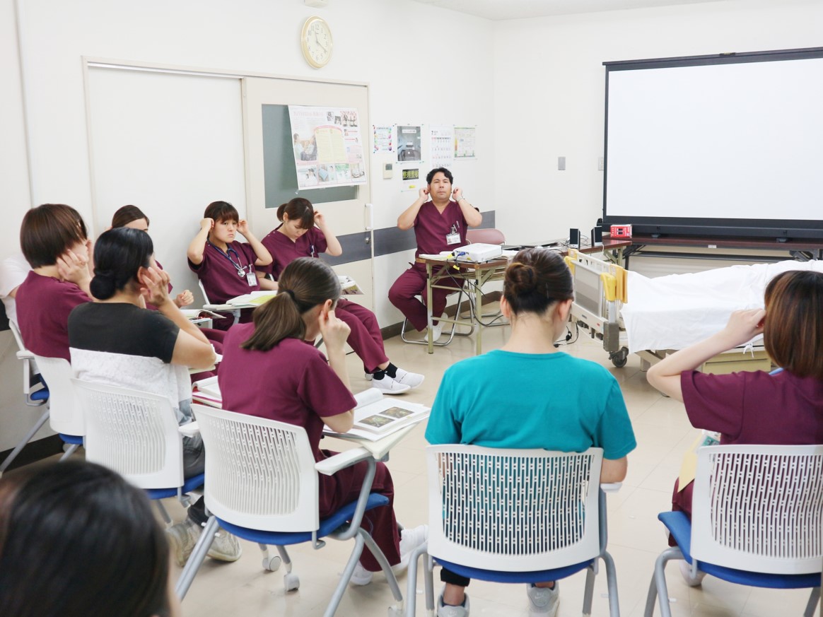 今回の研修では、一人ひとりが『頭から爪先まで』のフィジカルアセスメントの技術を習得することを目的としています。また、参加者は当院新人看護師以外にも近隣医療機関の新人看護師を交えた「多施設合同研修」となっており、北部地域の新人看護師が交流を図る場ともなっています。