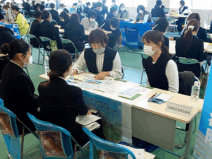 令和6年4月19日(金)と25日(木)にぐしかわ看護学校、浦添看護学校、北部看護学校の就職説明会が学校構内で行われ、当院も看護師採用に向け、説明会に参加しました。