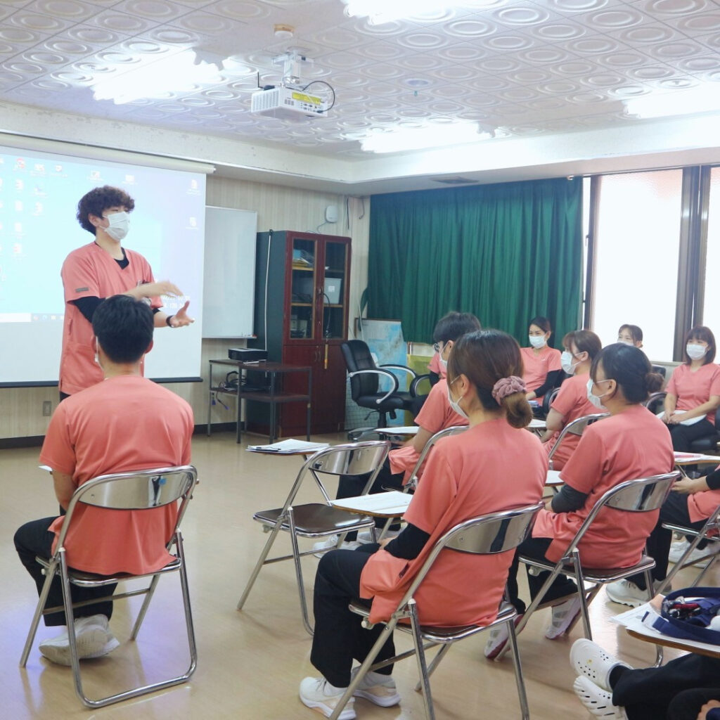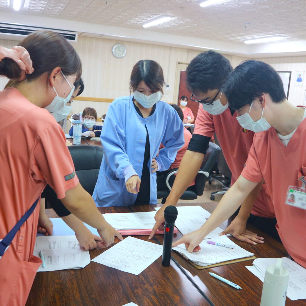 新人教育プログラムの内容も大切ですが、当院では新人同士の交流を図ることも重視しており、月に2~4回、集合研修を実施しています。また、研修とは別に、困っていることや進捗状況などを新人同士で共有する「プリセプティー会」も開催しています。