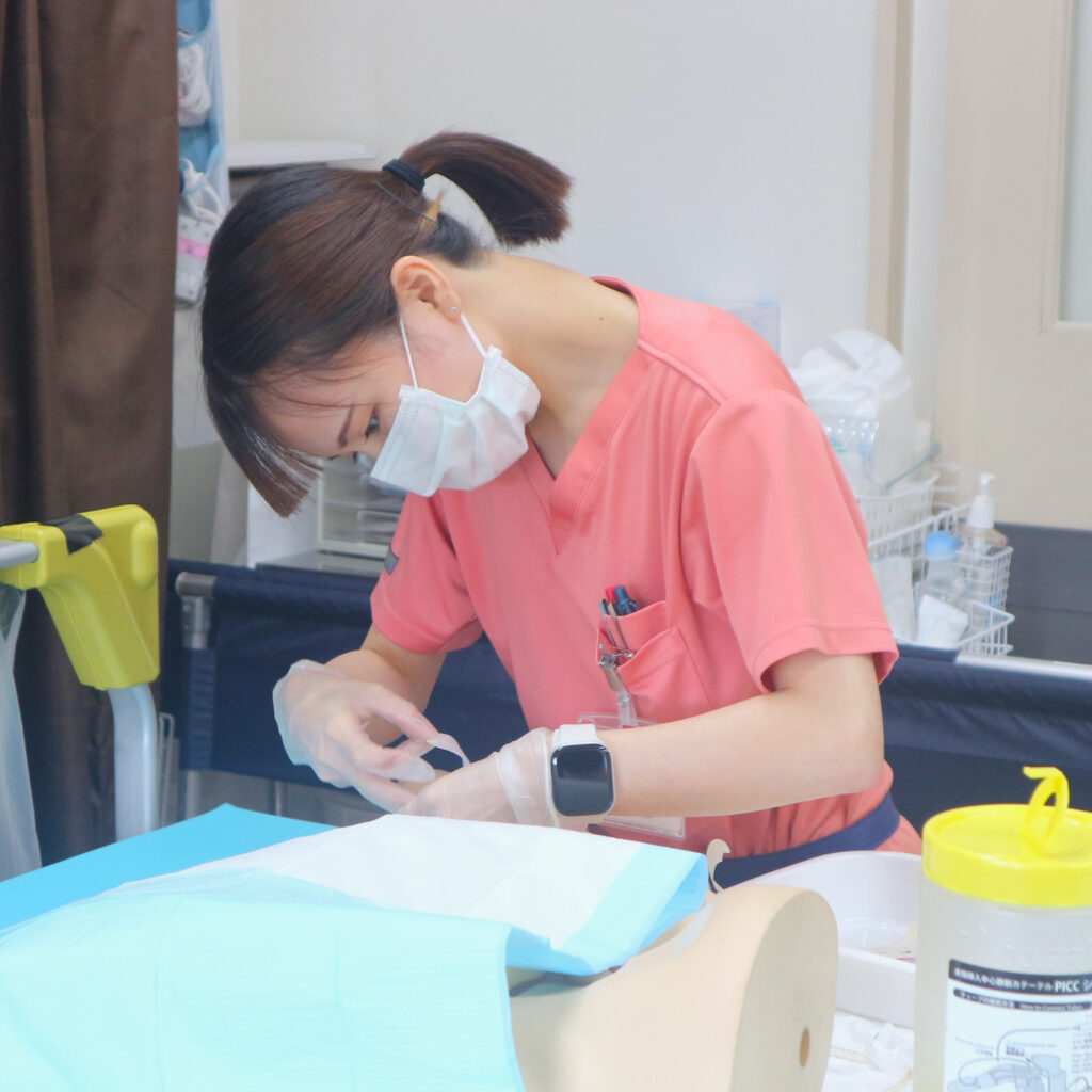 また、研修には現場に必要な看護技術をアセスメントし研修の成果が現場で発揮できるようサポートしています。看護の専門職として最善のケアが患者さんに提供できるように常に支援しています。