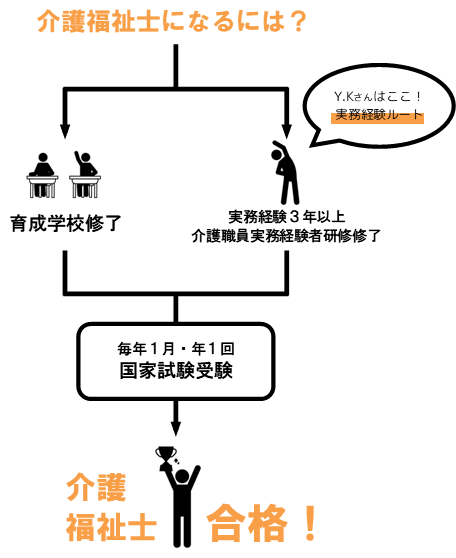 家族が介護職に就いていたことをきっかけに、高校卒業後すぐに介護の仕事を始め、働きながら介護福祉士の資格を取得しました。