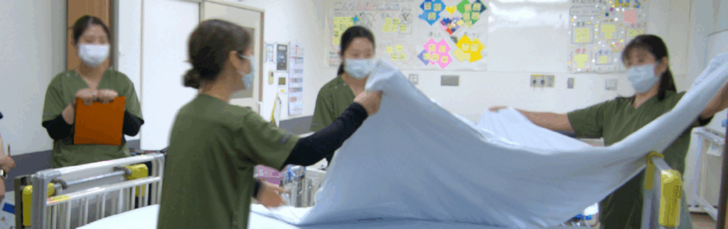 主な業務としては、ベッドメイキング、入浴介助、食事の配膳・下膳、食事介助、オムツ交換、検査への移動介助、メッセンジャー等を行っています。