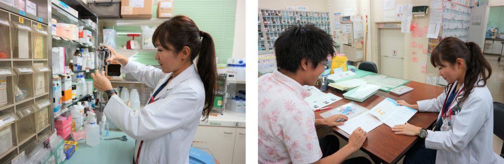 この他に、抗がん剤や分子標的治療薬などを厳正に管理する役割もあります。使用方法や取扱いに十分注意を要するため、こうした知識を医療スタッフや患者、その介護者に伝え指導する役割も担っています。こうして、安全ながん薬物療法の質がより向上し、患者さんの利益をもたらすことが出来るように努めています。