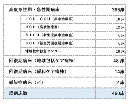 公立沖縄北部医療センターの病床数は450床とし、病床機能別の病床数は、以下のとおりです。